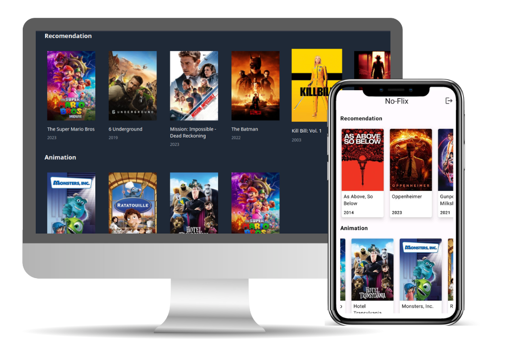 Platform streaming film berbasis web dengan sistem katalog, pemutaran video, dan navigasi yang efisien.