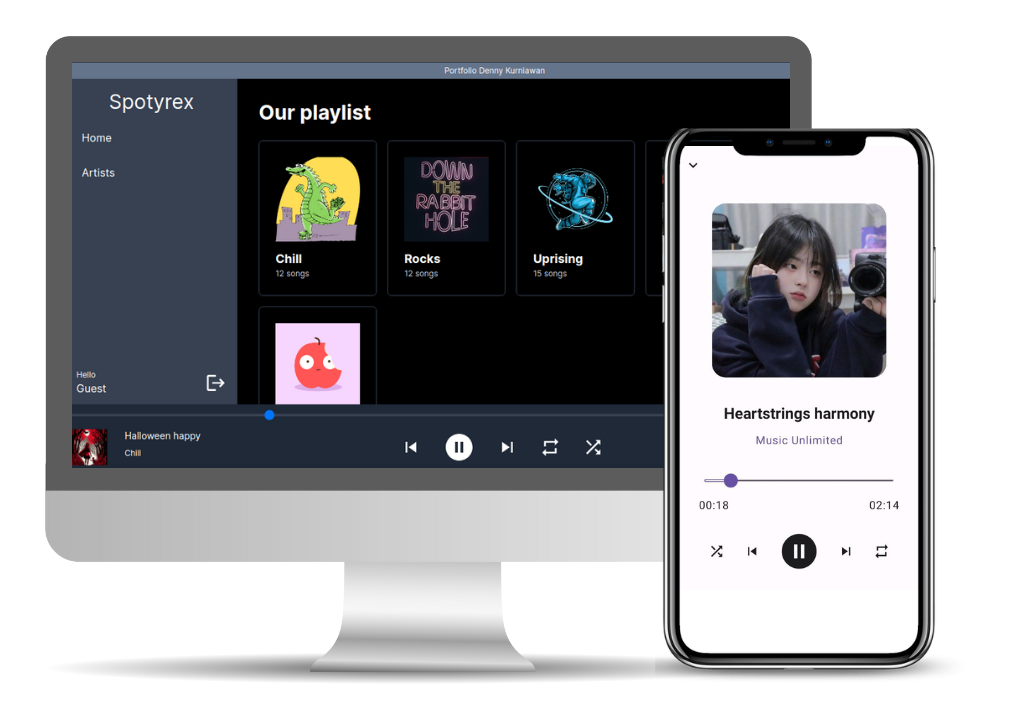Aplikasi streaming musik untuk Web dan Android dengan pengalaman pengguna yang sederhana, cepat, dan fokus pada kualitas audio.