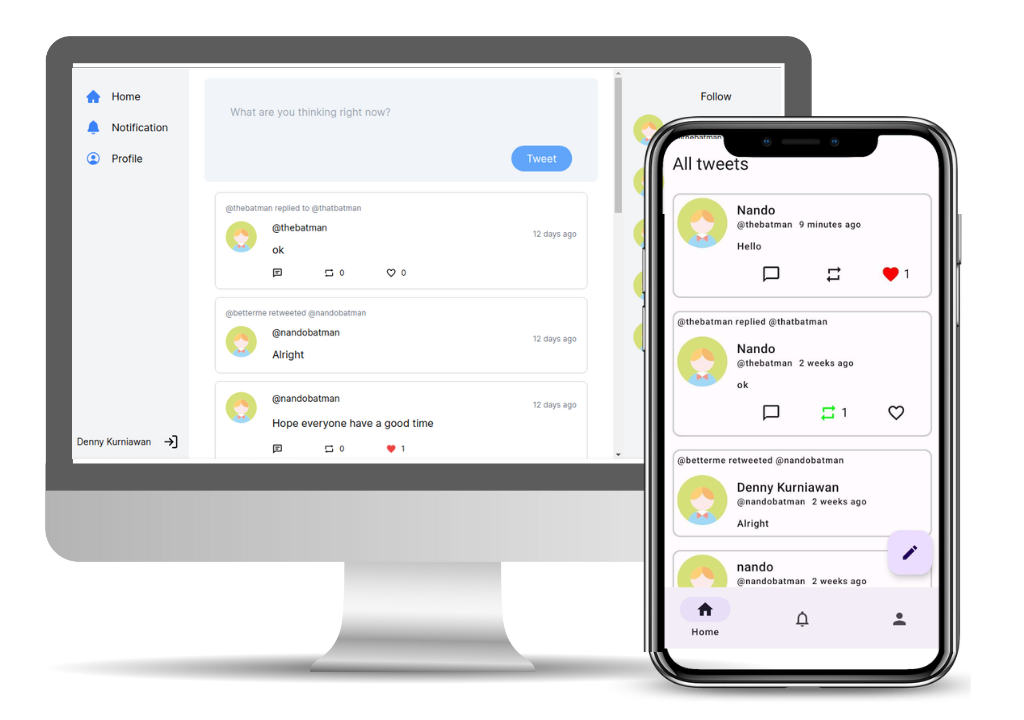 Aplikasi media sosial berbasis teks untuk Web dan Android. Mendukung posting, balasan, dan interaksi real-time.