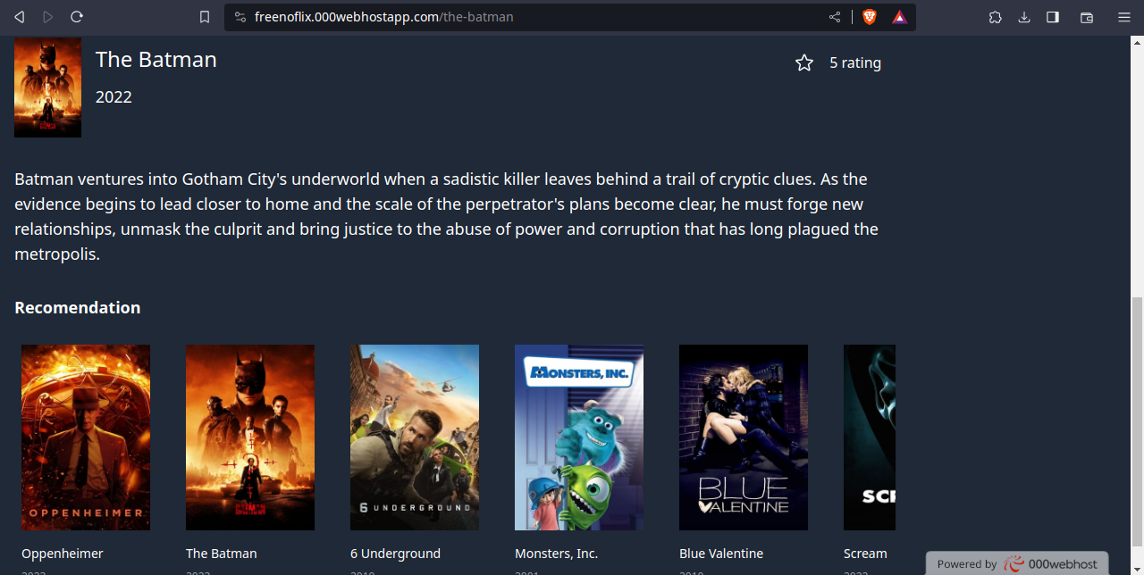 Aplikasi streaming film terintegrasi untuk Web dan Android yang memungkinkan pengguna menonton film favorit kapan saja dan di mana saja. Aplikasi ini dirancang agar pengalaman menonton tetap nyaman di berbagai perangkat. Versi web dibangun menggunakan Laravel 10 dengan database MySQL, sementara aplikasi Android dikembangkan menggunakan Kotlin dan Jetpack Compose.
